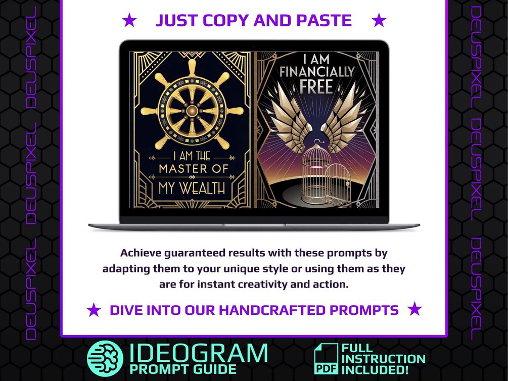 Art Deco Money Affirmation Card Prompts-Create Stunning Wealth-Inspiring Designs with Bold Patterns, and Powerful Affirmations